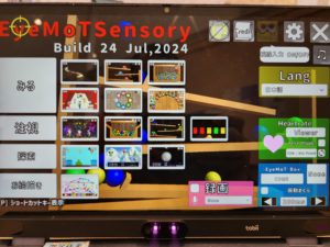 しかし最近は、4~5万円程度のセンサー”Tobii Eye Tracker5(https://www.tobii.com/ja)”をPCに接続して、無料ソフト”EyeMot(https://www.poran.net)”をダウンロードすれば、簡単なお絵かきや演奏、ゲームを視線入力で出来るようになりました。